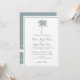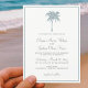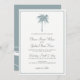 Árvore Tropical De Palma Azul Dusty Destino Convites De Casamento Com Ondas Oceânicas De Volta. Cartões de Convite para Casamento de Praia Elegante