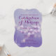 O estilo de tipografia de Tendy Simple e Modern Trendy Convidam o Modelo de Celebração de Casamento com um fundo roxo e lilás com um efeito de pontos de luz bokeh. O texto diz "O prazer de sua empresa é solicitado na Celebração do Casamento entre {bride e groom}. Você pode editar qualquer texto no modelo para atender às suas necessidades. A parte traseira do convite tem a mesma cor bonito. As cores podem parecer cores ligeiramente diferentes, dependendo do tipo de papel escolhido. Escolha entre mais de 10 tipos diferentes de papel, incluindo acabamentos texturizados. Perfeito para primavera ou convites para casamento de verão.