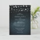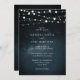 Convites de casamento da noite estrelada com um céu noturno com luzes de cordas suspensas. Cartão perfeito para a sua festa de casamento romântica.