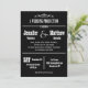 Este divertido convite para o casamento do teatro preto e branco apresenta uma decoração em cima com as palavras "Uma Produção Casada" logo abaixo e a palavra "Estrelando". Os nomes da noiva e do noivo aparecem numa tipografia divertida com os primeiros nomes maiores que os sobrenomes. Abaixo dos nomes que você pode personalizar o evento para o qual está convidando seus convidados. A tipografia divertida continua nos convites, na forma como os detalhes do casamento são escritos. Este é um convite de excelente para qualquer interessado no teatro ou interessado em se divertir no convite para o casamento. Direitos autorais