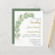 Estes convites de casamento orçamentários com cor d'água eucalipto verde e texto preto e dourado sobre fundo branco são elegantes e únicos. O texto modelo facilita a personalização.