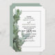 Esta design apresenta folhas e galhos de eucalipto de prata em dólar. O belo verde do eucalipto deixa elogiar a elegante e moderna fronteira negra em torno do texto do casamento. Uma fusão perfeita do moderno e chic com tons verdes prateados de eucalipto. Verde prateado, preto e branco são uma combinação perfeita para um casamento temático de verde rústico. Design de convite de casamento único com elementos modernos. Também estão disponíveis itens de papelaria de casamento e outros formatos de convite de casamento.