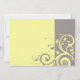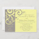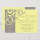 Convites modernos, elegantes e saborosos, de casamento amarelo-mole contemporâneos com sotaques de cinza de suave apresentam delicado fundo de folha de rolagem de espiral. Personalize online com seus detalhes de casamento.