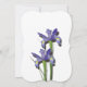 Este elegante design floral apresenta íris roxos. Os belos íris roxos com seus caules verdes são colocados sobre uma borda geométrica fina. Os nomes da noiva e do noivo são da cor correspondente ao roxo da flor da íris. No verso é utilizada uma imagem maior das elegantes flores da íris. Este é o perfeito design de casamento floral ideal para qualquer tema de casamento. Design de convite para casamento da íris com elementos modernos. Também estão disponíveis itens de papelaria de casamento e outros formatos de convite de casamento.