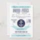Convites Náuticos Modernos, Ainda Vintage - apresenta um design de chic com talento de vintage. Cada convite apresenta uma âncora com corda envolta em torno dela, uma corda suja usada como divisor entre os nomes e a formulação do casamento e vários estandartes modernas e de vintage abaixo da âncora. O esquema de cores é azul claro, com azul-marinho, branco e um toque de cinza. Cada convite vem com um envelope encaixado e você pode atualizar do estoque básico do cartão para vários tipos mais antigos para a direita acima.