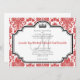 Convites De Casamento Branco Preto De Damasco Vermelho Personalizado. Esses casamentos tema damasco vermelhos convidam com um quadro arquivado e texto modelo para personalização. Você pode alterar a fonte do texto clicando em "personalizá-lo" e usando as ferramentas personalizadas à direita da imagem do convite. Se precisar de ajuda, clique em "Contato" e envie uma solicitação por e-mail.