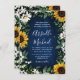 Royal Blue Sunflower Country Wedding Invices - apresentam um fundo de madeira azul ou real de celeiro marinho decorado com margaridas, girassóis, verde, hálito de bebê e lírio do vale. NOTA: este convite é pré-dimensionado para 4,5 polegadas por 6,25 polegadas. Um tamanho 5x7 também está disponível neste design. Exibir a coleção encontrada nesta página para esse produto e para itens correspondentes.