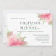 Flores abstrato cor-de-rosa sobre fundo branco com folhas sábia e espirais brancas fazem fronteira com este belo conjunto de convites para o casamento. Perfeito para casamentos de jardim ao ar livre e romântico em qualquer estação — simplesmente mude a cor de fundo para primavera, verão, outono, outono e inverno. A elegante tipografia vintage semissformal agrada certamente a noiva e o noivo tradicionais, mas uma mistura de estilos sofisticados a torna uma moda suficiente para os casais modernos. Simples, mas na moda, elegância a preços de desconto e barato para noivas frugais num orçamento. Mostrado no estoque básico de papel — ou upgrade para opções de feltro, reciclado, linho e papel metálico de qualidade superior. Personalize-o para alterar as cores e estilos da fonte. Entre em contato conosco se você quiser que este design seja modificado para corresponder ao seu tema de cor da festa noiva. Entre em contato conosco para obter assistência se precisar de ajuda para criar seus próprios convites únicos. TAMANHO DA PLACA: 5,5 x 7,5 polegadas — outros tamanhos, cores e estilos de papel disponíveis, juntamente com mais acessórios e estoques de casamento deluxe para noivas de baixo custo em um orçamento.