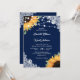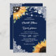 Marinho azul rústico convites para casamentos florais inspirados em girassóis, burlap e lace.