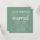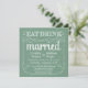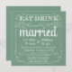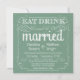 Coma, beba, e seja casado — convites de casamento rústicos de campo ao estilo Vintage — Rolamentos suaves, encaracolados e tipografia de moda antiga em um fundo de burlap up verde de menta. Adicione seus nomes e informações de casamento neste modelo fácil de usar. O elegante, mas divertido e caprichoso, escrevendo de script de estilo chalkboard pode ser modificado para o seu tema de casamento formal ou semiformal. O estilo moderno casual é perfeito para casamentos contemporâneos modernos, com um toque divertido de encanto sofisticado para a noiva e noivo tradicionais. Entre em contato conosco para obter ajuda com a personalização se precisar de espaço adicional para os detalhes do casamento. Outros tamanhos e estilos de quadro disponíveis. NOTA: Este design de produto é configurado apenas para cartões quadrados — requer postagem extra.