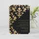 NOTA: esta é uma imagem impressa em formato plano, não há nenhuma lente, tinta metálica dourada ou camadas. COLOR PALETTE: Dourado aspecto metálico brilhante e COLLECTION de DESIGN preto: Realmente adequado para um evento formal de gravata negra, casamento ou recepção, este design foi criado utilizando uma folha moderna de espiral foliar com um elemento estilizado de farinha de lis. Também tem um elemento de palavra caligrafia de rolagem manuscrita "e" de Audrey Jeanne Roberts. A dentro diagonal compensada que o damask adiciona um toque do estilo moderno de tendências e elegância. No verso está a repetição do design com o seu monograma grande e os nomes da noiva e do noivo. Sua formulação personalizada de convite pode ser facilmente personalizada com os simples campos de modelo fornecidos. Disponível qualquer fundo colorido. Apenas entre em contato conosco e combinaremos com a cor do seu casamento.