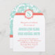 O Casamento tema damasco de Mint e Peach Monogramas convoca o Velho Velho Velho Oeste Hollywood Farmhouse Vitoriano Floral Victorian Damask Monogramding. Para alterar a cor do texto, basta selecionar o texto e alterar a cor clicando na caixa de cores localizada acima das camadas de texto.