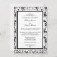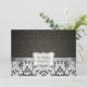 Bonitos convites para Casamentos tema damasco de preto e branco. Adicione suas informações pessoais e textos. Acentos de fita metálica de prata.