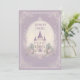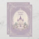 Estes convites para castelos de princesa roxa bonito apresentam um castelo encantador na frente com o seu nome personalizado e uma bela borda floral branca no verso com as suas informações de evento.