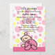 Tickled Pink Trendy Baby Girl Chá de fraldas Convite. Apresentando uma adorável garotinha rastejante com uma poca rosa e amarela de fundo pontilhado. Correspondendo a você, obrigado que você tenha autocolantes e selos também disponíveis. ©jdsclipart