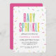 Convide os convidados a comemorar a futura mãe com estes convites de aspersão para bebês, bonitos e coloridos, com um design moderno de aspersão na frente e cor corajosa nas costas. Esta design é tão doce quanto o glacé funfeto! Veja mais na moda e convites modernos para chuveiros de bebês na loja Young Wanderlust!