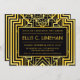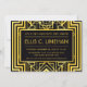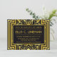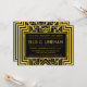 Esses convites para festas de solteira apresentam um intrincado quadro geométrico, padrões geométricos, uma paleta de cores preta e dourada e outros detalhes estilísticos, todos inspirados na Art Deco e nos vinte e poucos anos ruidosos. Você pode personalizar os campos de texto de exemplo de acordo com o seu gosto.