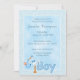 Baby Shower convida meninos com uma cegonha azul com a palavra garoto. Fundo azul com um centro do céu. Adicione os detalhes do seu próprio chá de fraldas com o modelo fácil de usar.