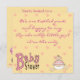 Chá de fraldas é uma maneira incrível de celebrar a chegada de um novo bebê. Use os convites maravilhosos e criativos para convidar todos para a celebração. Use o modelo personalizado para inserir todos os detalhes; todos os textos podem ser alterados. O fundo do seu convite é amarelo, com pequenos corações cor-de-rosa espalhados por toda parte. As palavras "Chá de fraldas" no canto inferior esquerdo e um pequeno gráfico de bebê bonito. A parte de trás apresenta um fundo amarelo e uma pequena carruagem de bebê rosa.