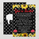 Organize seu próximo churrasco com charme rústico usando este convite de churrasco de fazenda, com um lindo design, com um fundo vintage em bolinhas pretas e brancas, girassóis e uma ilustração de conjuntos de churrasqueira exibida de forma elegante na frente do cartão. Perfeito para um churrasco campestre, piquenique ou uma festa no quintal, este convite combina elegância rústica com diversão casual.