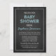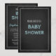 Convites personalizados para bebês em um padrão elegante e divertido de chalkboard com texto azul pastel claro. Personalizável com seu texto, entre em contato conosco para solicitar uma alteração de cor. Perfeito para um bebê.