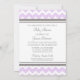 Convites personalizados para bebês em lavandas elegantes e modernas, roxo, cinza e padrão zigue-zague cebola branco. Personalizável com seu texto, entre em contato conosco para solicitar uma alteração de cor.