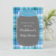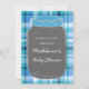 Convites personalizados para vitrines em elegantes e modernos padrões azuis, lacrimogêneos, cinzas e xadrezes de campo branco com uma ilustração de jarro de mason. Personalizável com seu texto, entre em contato conosco para solicitar uma alteração de cor.