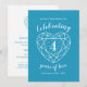 Convites de aniversário de casamento de 4 anos Topázio simples com efeito de pedra em forma de coração em arte gráfica de linha azul e branca. Personalize com os detalhes da sua festa de 4 anos de casamento. O aniversário de 4 anos de casamento é tradicionalmente associado a pedras de topázio azul e o coração simboliza o amor. Gráficos e design por Sarah Trett para www.mylittleedenweddings.com no zazzle.