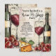 Convites elegantes e sofisticados para festa de vinho e jazz contemporâneo moderno com adoráveis notas musicais artísticas, queijo, vinho e tema de jazz! Ótimo para celebrar uma divertida noite de garotas em casa, coquetel social ou ocasião especial pessoal. Arte em estilo aquarela com garrafa, copo e fundo de amostra de queijo suíço. Personalize online com os detalhes do seu evento.