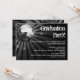 Bola de prata com aspecto espumante com raios de fundo claros e estrelados em esquema de cor preto e branco. Comemore a formatura de qualquer estudante com uma legal festa de dança em uma casa ou sala de festas. Este convite festivo é perfeito para convidar amigos, família e convidados. Este item está disponível como uma coleção completa
