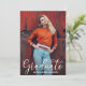Sua foto na frente desses convites para festas de formatura e suas informações sobre a festa no verso. Escolha QUALQUER COR na parte traseira para corresponder à sua foto ou às cores da sua escola clicando no link Personalizar mais e usando a nossa ferramenta de seleção de cores. Mais designs na nossa loja.