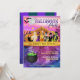 Convites divertidos de Halloween com slogan espirituoso e cativante. Inclui bruxa da festa, múmia, vampiro, esqueleto, noiva-monstro e Frankenstein. Para um monstruoso mash de arrepiar que certamente será um sucesso! Todas as fontes são personalizáveis! Mansão assombrada misteriosa ao fundo com lua cheia mágica. Morcegos voando na frente da lua. Céus lindos rosa e roxos. Esses cartões mágicos certamente impressionarão cada fantasma, duende e bruxa que você convidar!