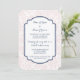 Convites personalizados de festa de noivado modelo em elegante pasta clara cor-de-rosa, azul marinho escuro e branco clássico e padrão gráfico de vinheta floral damask. Totalmente personalizável com seus detalhes de festa de noivado. Também disponível em uma grande variedade de produtos de casamento correspondentes.