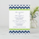 Festas de noivado em elegante azul marinho escuro, verde limão brilhante e diversão branca e padrão retrô chevron zigzags stripes. Totalmente personalizável com seus detalhes de festa de noivado. Também disponível em uma grande variedade de produtos de casamento correspondentes.