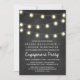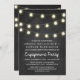 Convites para Festas de noivado em painéis e luzes - apresenta um fundo em quadro de fixação com luzes de cordas e tipografia de giz. Consulte a coleção de designs de correspondência de cheios nesta página.
