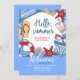 Um convite com tema de verão com elementos de praia em vermelho, branco e azul. Apresentado como um convite de despedida de solteira, é perfeito para todas as celebrações de verão. (<a href='https://www.freepik.com/free-vector/hellos-summer-background-with-quote_1168985.htm'>Projetado por Freepik</a>). <br/><br/>O cartão é fácil de personalizar com sua redação, fonte, cor da fonte, opções de forma de papel e escolha de seis tipos de papel.<br/><br/>Não é exatamente o que você está procurando? Todos os nossos produtos podem ser personalizados para atender às suas necessidades sem custo adicional.<br/><br/>Basta entrar em contato conosco em heartfelthelper@gmail.com.<br/><br/>Produtos coordenados disponíveis: Basta perguntar!