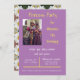 Imagem de menina aniversariante e princesa em fundo roxo na frente com detalhes da festa e imagens de margaridas no verso.