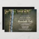 Rustic Birch Tree Festa de solteira Invtions - apresenta um fundo vintage com uma árvore de pássaros e luzes de cordas.