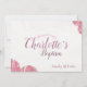 Pink e branco personalizaram convites para batizar flores de verão com olhares de rendas. Perfeito para o batizado de uma menina. Para personalizar nomes, datas e locais, use o botão personalizar. Também estão disponíveis cartões de ponto para comemorações do batismo.