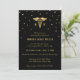 Ouro clássico e convites para festas de formatura de infantários. Perfeito por celebrar uma nova enfermeira! Símbolo sofisticado de confetti e caduceus com "RN" num efeito impresso em ouro shimerso.