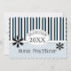 Enfermeiro bonitinho com Formatação Convoca em branco e preto azul, bolinhas e padrões de listras. "Enfermeiro Praticante 20XX" emblema. O retorno do convite é PERSONALIZÁVEL.