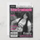 Convites de graduação que se parecem com o cobrir de uma revista. Personalize com a foto do formando, informações escolares e detalhes da festa. Para obter melhores resultados, use uma foto de alta resolução mostrando a metade superior do formando. Podem ser utilizadas fotografias a preto e branco ou a cores.