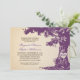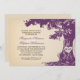 belos ensaios de design com vintage jantam convites com uma velha árvore colorida de ameixa e noiva e nomes de noiva na madeira de forma cardíaca.