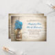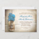 lindos antecedentes de madeiras rústicas e jarro de mason com flores azuis leves e convites para janto de ensaio. Eu sugiro linho ou papel de feltro para este design.