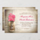 lindos antecedentes de madeiras rústicas e jarro de mason com flores cor-de-rosa, ensaiando convites para janto. Eu sugiro um belo papel de textura de linho para este design.