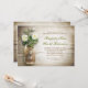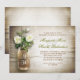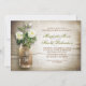 lindos antecedentes de madeiras rústicas e jarro de mason com flores brancas ensaiando convites para janto. Eu sugiro linho ou papel de feltro para este design.