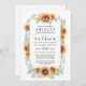 Convite para Janto de ensaio de Sunflower country - apresenta girassóis elegantes de aquarela com verde claro entrelaçados sobre uma caixa de texto única.