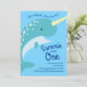 Estes adoráveis e coloridos convites de festas de aniversários narvais são perfeitos para uma celebração primeiro aniversario! Personalize o texto para torná-lo seu. O olhar e a sensação modernos é a forma perfeita de celebrar o seu pequeno que ama a praia e o oceano no seu primeiro aniversário!