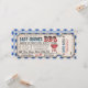 Convites de tíquete de Chá de fraldas de CHURRASCO - estilo rústico com Tíquete Raffle de Fralda anexado. Fácil de personalizar, divertido e inclusivo para convidados. Fronteira azul de gingham e apoio. Divirta-se!