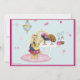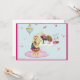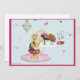 design para festas infantis, aniversários, anúncios, etc., design azul e rosa Bonito para meninas. Use convites, notas de agradecimento e muitas outras ocasiões. Little Yorkshire Terrie sentada na mesa com seus chapéus bonito e um candelabro ao fundo. Se precisar de ajuda para personalizar o contato Greer em greerdesign@aol.com
